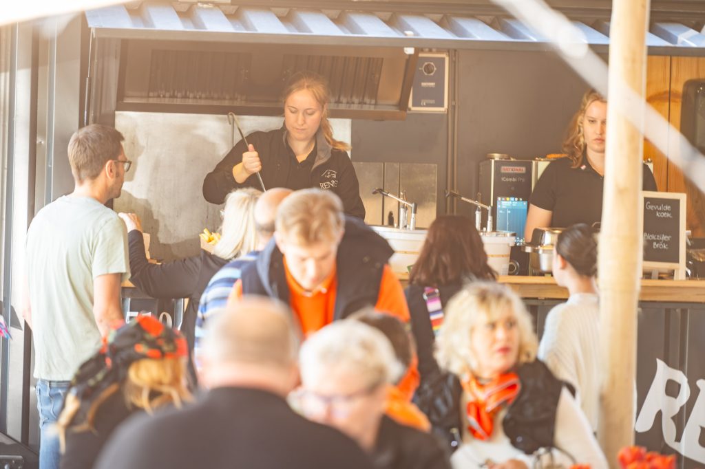 For several years, we have been a regular Tulip Festival venue. With a pleasantly decorated terrace with food trucks and a beautiful catering location, this is the ideal stopover while driving the Tulip route. Enjoy a tasty snack and drink or a refreshing soft ice cream. Take a stroll through the farm shop with a wide range of regional products, fair and traditional meat and fun gift items, while the children have fun on the bouncy castle or get lost in the maze made of bulb boxes.