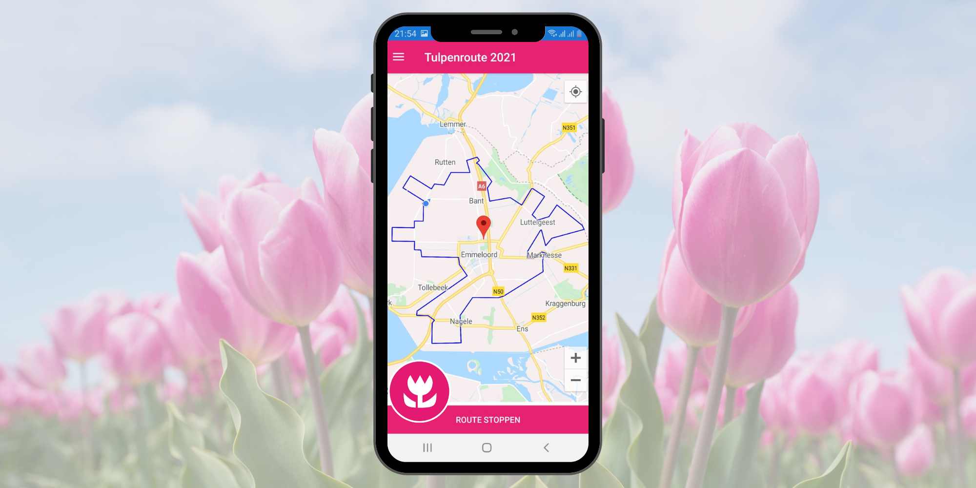 De Tulpenfestival-app is alleen geschikt voor bezoekers van de autoroute. De app werkt niet op de fietsroute.